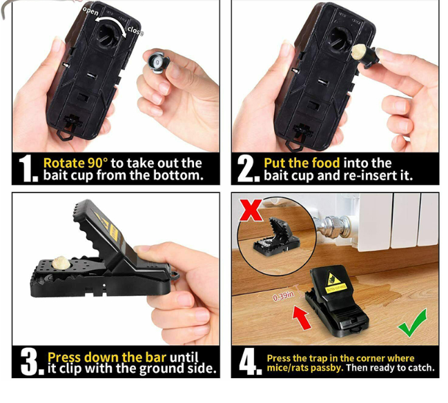 The snap trap with high sensitivity can quickly respond to rat lured into the catcher. Powerful spring enables it to shut instantly and catch the mouse. You can put bait in holes which helps lure rats. Ideal for houses, restaurants, shopping malls, food factories and other places for deratting.